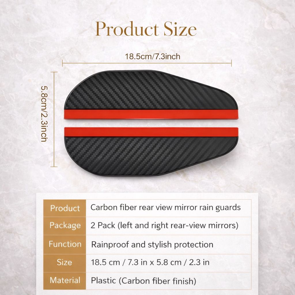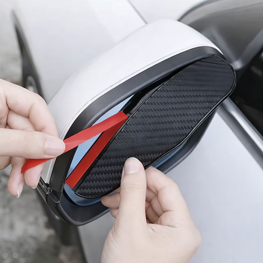 These carbon fiber rain guards are designed to deflect rainwater away from your side mirrors, keeping them clear and enhancing driving safety in bad weather.