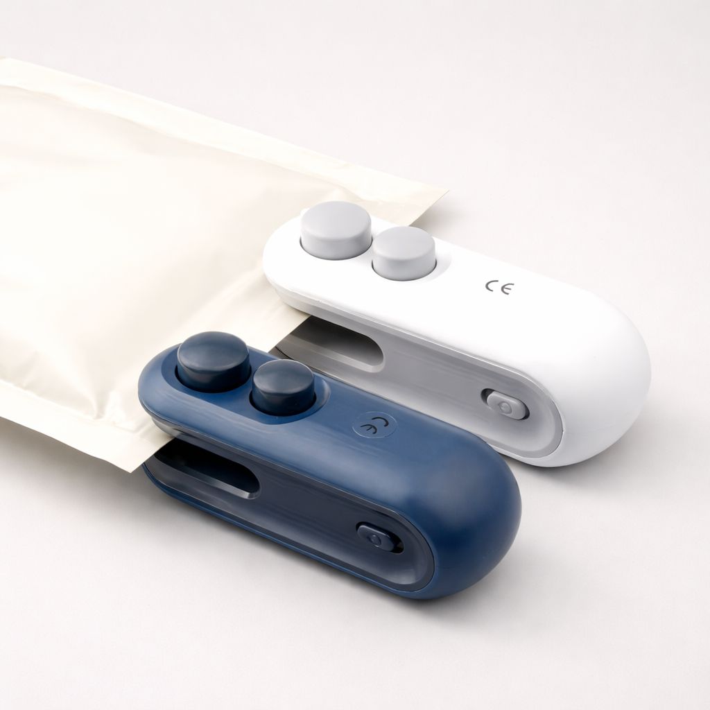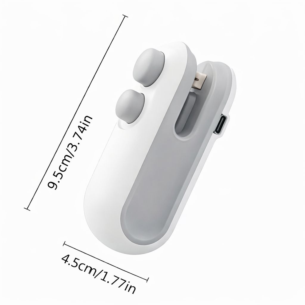 Product Type: USB Rechargeable Mini Bag Sealer • Function: Heat Sealing & Bag Opening (2-in-1) • Charging Type: USB Type-C • Power Source: Built-in Rechargeable Battery • Heating Method: Instant Heat Technology • Usage: Suitable for plastic snack bags, food storage bags, foil bags • Portable & Lightweight Design • Colour: White / Blue (depending on selection)