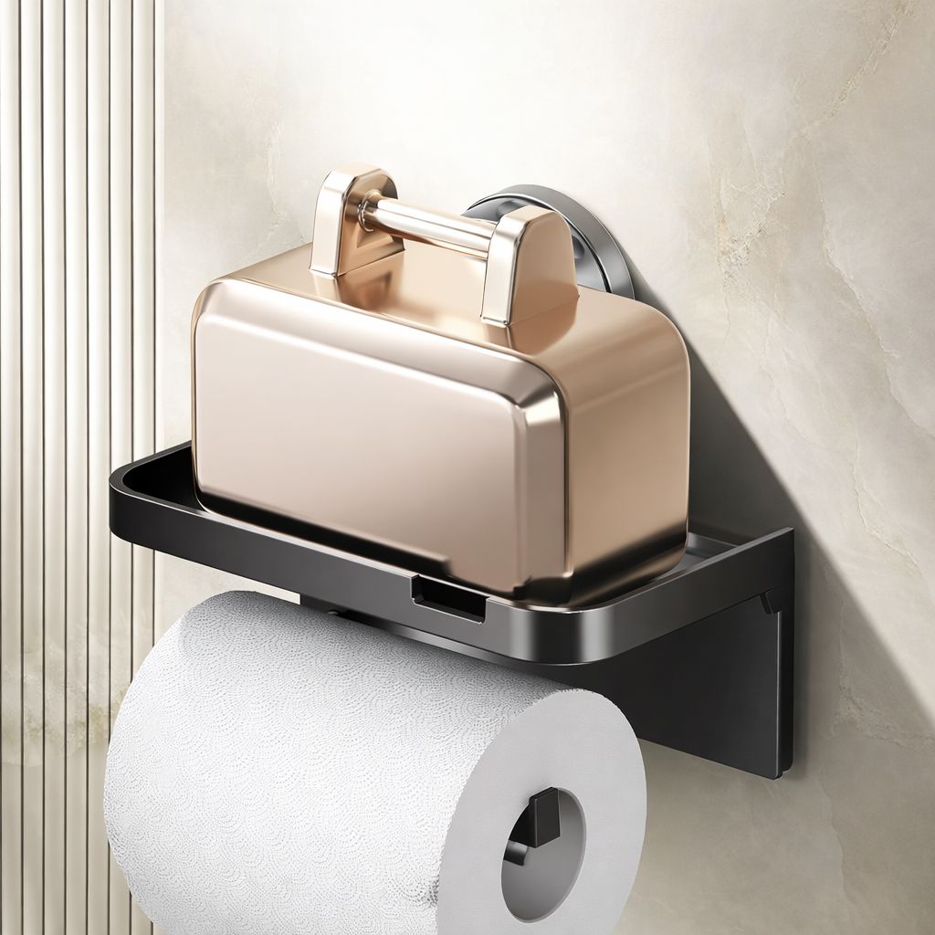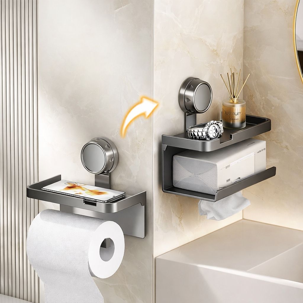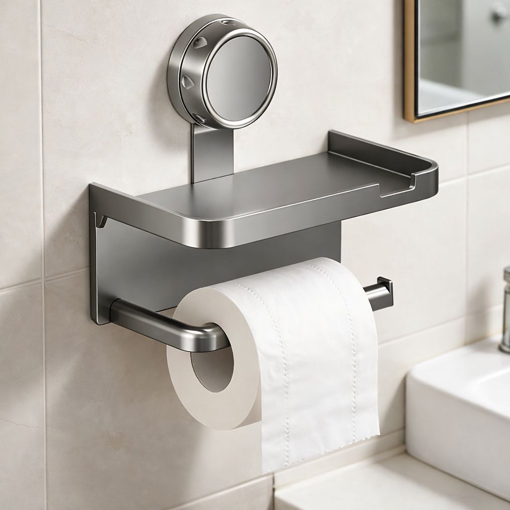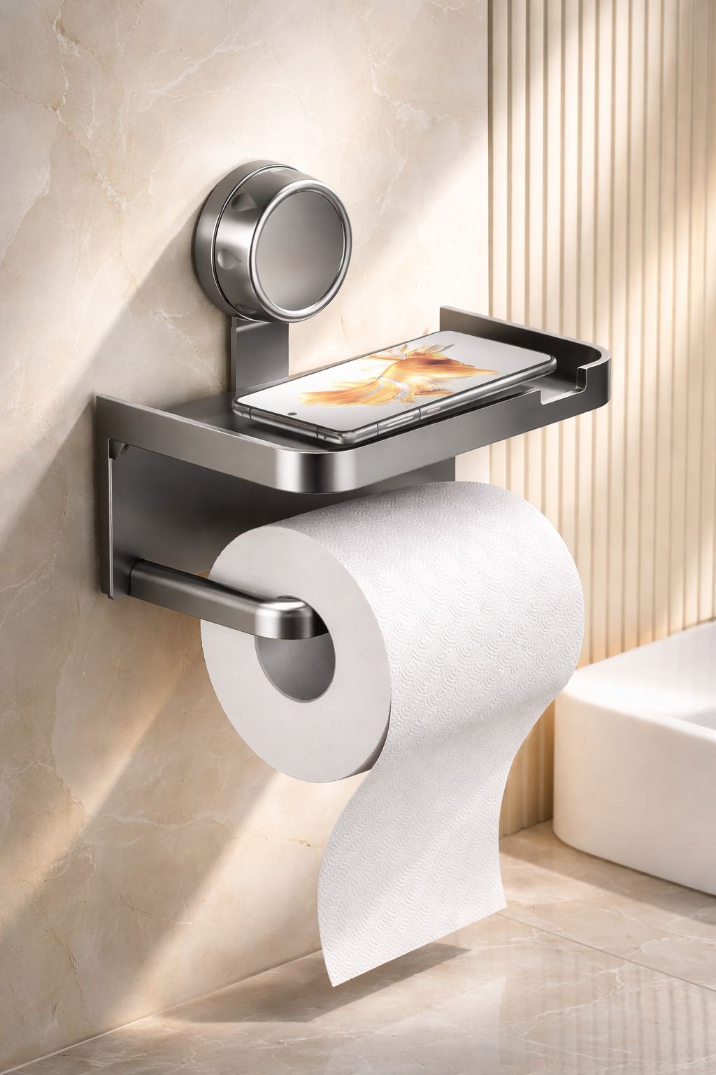 Improve your bathroom with this multi-functional wall mounted toilet paper holder with storage shelf, designed for convenience and modern living.